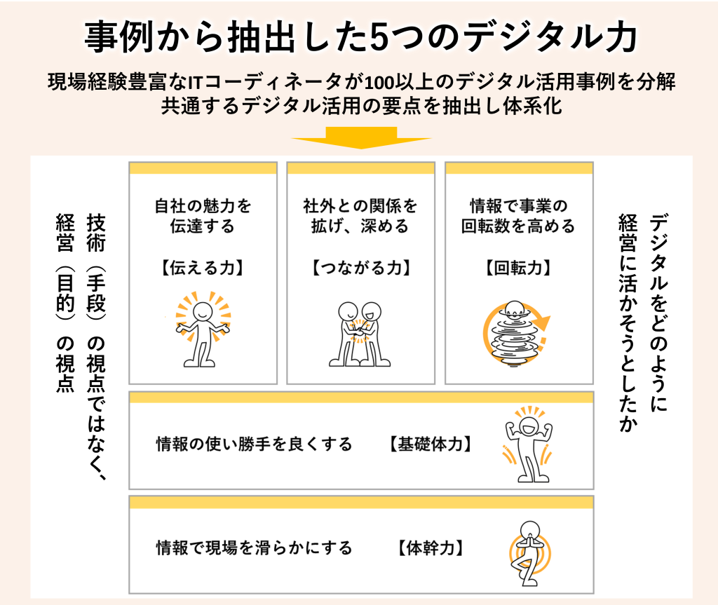 DXという言葉がかえって中小企業や農業経営体のIT活用・デジタル活用のブレーキとなっているのかも・・・ お知らせ 2022.11.04 先日、ある商工会議所の経営指導員さんと意見交換している中で、こんな話題が出ました。 「DXという言葉がかえって中小企業や農業経営体のIT活用・デジタル活用のブレーキとなっているのかも・・・」 確かにその気配はあるのかもしれません。IT活用といったりデジタル活用といったりDXといったりと、例のごとくこの業界の悪い癖で次から次に言葉が変わる。思い切ってツールを導入してみれば、なかなか活用に至らず、今一つ投資対効果を感じられない。しまいには、単なるデジタル活用はダメで、デジタル変革、トランスフォーメーションでなければならない、なんて論調が国の方からも繰り返し繰り返し投げつけられれば、「もういいや、うちはDXとか関係ないから」と拒否反応を示してしまうのもわからんでもありません。 DXの押しつけに辟易している、そういう感じでしょうか。 そんな中小ビジネスの現場は二極化していると感じています。デジタル活用の効果をイメージできる経営体とイメージできない経営体。 拙著にも書きましたが、これはシンプルな要因で、経験があるかないかの違いに起因しているとみています。経営者が他の業界でデジタルを使って業務をしてきた経験がある企業はデジタル活用にすんなり進む。あいにくこれまでそういった縁がなかった企業はなかなかデジタル活用の効果をイメージできずに前に進まない。知っているか知らないかで、経営にデジタルを取り入れるチャンスをつかむ企業とスルーせざるを得ない企業がある。 だからと言って、デジタルツールや技術を学ぼうというアプローチがあり、中小ビジネスでもデジタル人材が必要だなんて言って、プログラミングや統計分析を学ぼうとプログラムが組まれますが、中小ビジネスに本当にそういうデジタル技術を持った人材が必要でしょうか?結論としてはこれまた遠回りです。 これに対する私たちのご提案は、「カイゼン」を入り口にしませんか、ということ。 んん?「カイゼン」、使い古された言葉と思われるかもしれませんが、変化し続ける外部環境に対峙することのみが唯一の生存条件である経営においては、変化に対応して常にカイゼンし続けることは不可欠なマネジメントです。 こういうと、カイゼンでDXは実現できない、とか言い出す輩がいるのかもしれませんが、仮にそうだとして、だから何なのでしょう?カイゼンをしなくていいからDXをしろと言っている?これがイカンのです。変革・イノベーションなんて、そうそう簡単に実現できるものでもないし、様々なファクターからチャンスを見つけ、出会い、成し遂げていくもの。ではそれまで何をしているか、変革をウンウンと毎日考えればいいのか?そんな無駄なことはありません。徹底して足元を見て、Ongoingの事業をさらに最良のものに、昨日よりも今日、今日よりも明日、と不断のカイゼンを実行していくなかで、もっともっとと執念深く、インテル創業者の本にあるように「偏執狂」かのように、自分のビジネスを徹底的にカイゼンしていく先に、事業の前提条件さえカイゼン対象として見直すことにつながり、結果として「変革していた」、これがトランスフォーメーションではないかと考えます。 あるいは、カイゼンなんてしているよ、と答える事業者もいるかもしれません。はい、カイゼンをしているのはいいことです、というか当たり前です。大切なのは、そのカイゼンをし続けることですね。そして、そのカイゼンサイクルの中に、デジタルという武器を取り入れる、そういうことをしてみませんかと。 中小企業や農業経営者と話をする中で、「デジタル活用の効果がイメージできない」という声を聞きます。それは無理もありません。前述したとおり、デジタル活用した経験がないのですから、効果をイメージしようとしても難しいのが現実です。では、何もできないではないか、ではなくて、まずはカイゼンしてみましょうよ、そしてそのカイゼンの一部にデジタルを取り入れることを「後から考える」、そうすれば、何のためにデジタルを活用したいかが見えてきますので、それにふさわしいデジタルツールも探しやすくなります。 そう、「デジタル活用」とか「DX」を入り口にするのではなく、事業の「カイゼン」を入り口において、例えば新商品開発や在庫管理の精度アップ、人材の育成をまずは進める、これなら特にデジタルについて詳しくなくても前に進めますね。その上で、そのカイゼン活動の中にデジタルを取り入れられる場所を探す。伝える力、つながる力、回転力、基礎体力、体幹力。はいそうです、デジタル5つの活かし方をそこで役立てていただきたいのです。カイゼンの延長線上でデジタルを活かす際に、この視点が発想の役に立ちます。ああ、そういうところでデジタルを使えばいいのか、進め